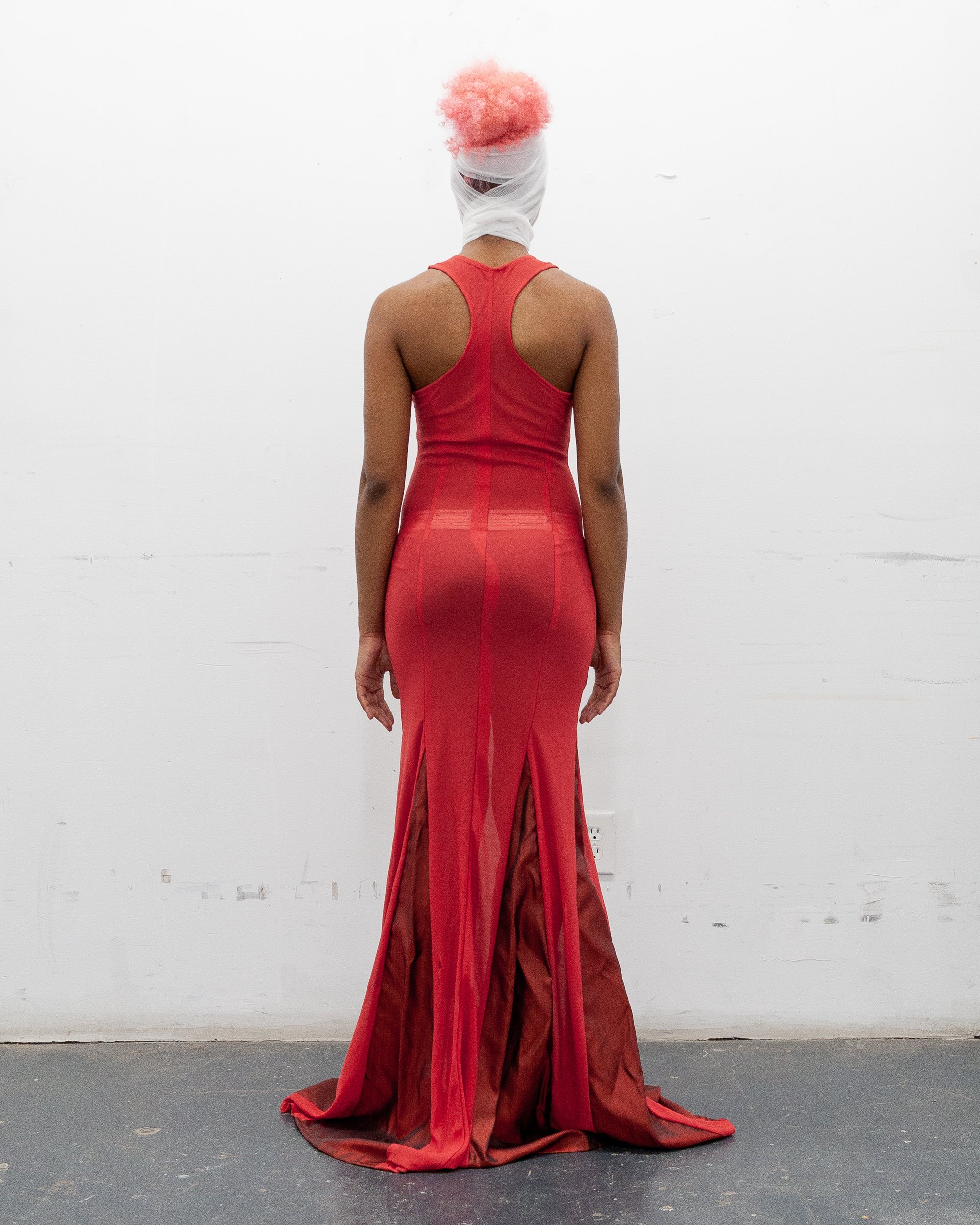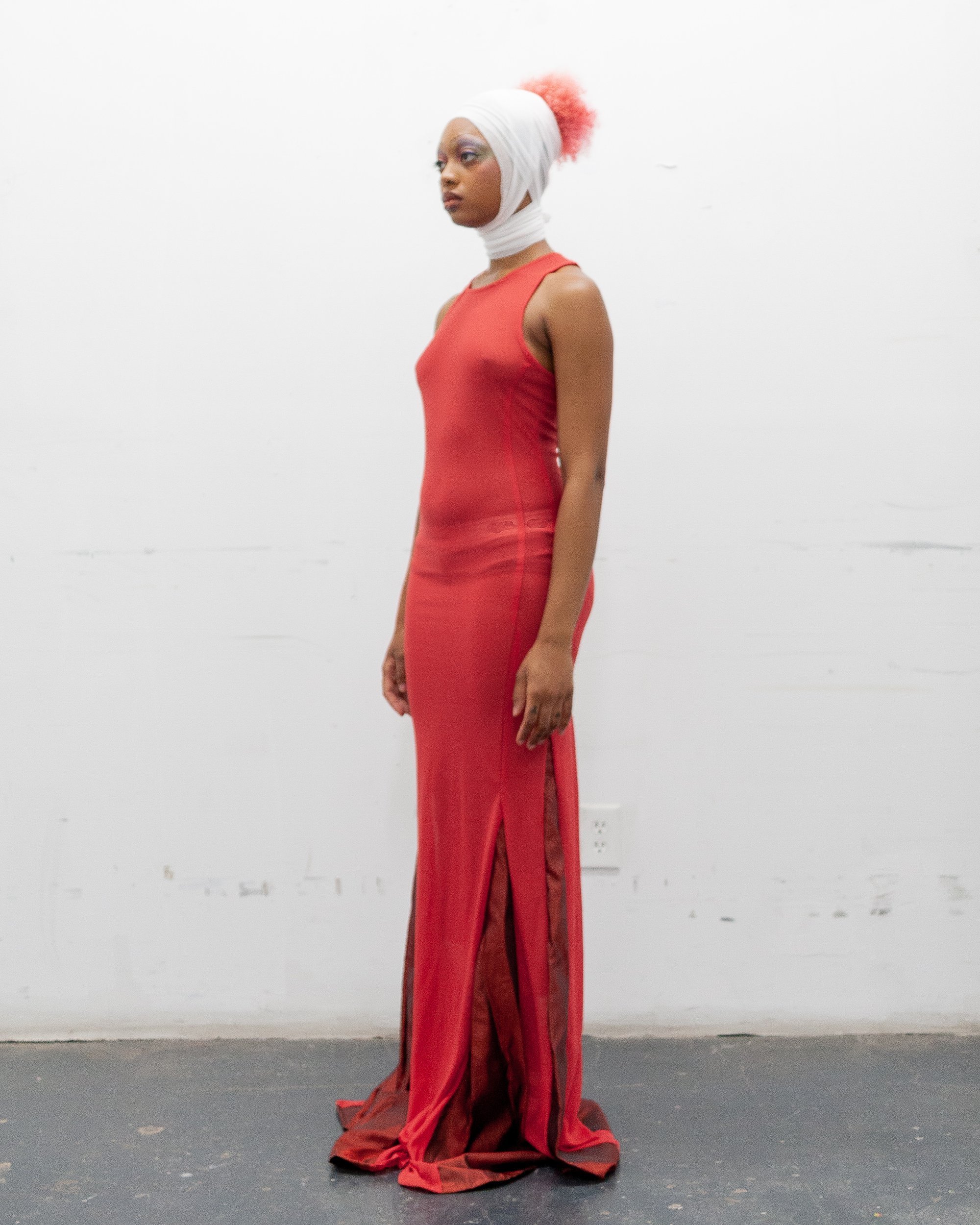 ANTHONY JAMES™ SS25 PURGATORIO ELONGATED TANK DRESS IN DEEP SCARLET COTTON/VISCOSE.